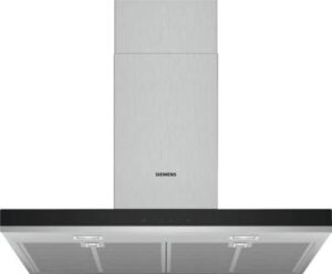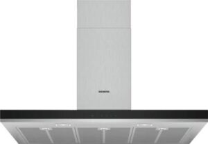 Schouwkap, Afvoer, Om te bouwen naar / geschikt voor recirculatie, 3 Standen, maximale luchtafvoer: 590 m³/h, maximale luchtrecirculatie: 350 m³/h, Druktoetsbediening, LED verlichting, aantal lampen: 2, Metaal vetfilter, Geschikt voor vaatwasser, Energieklasse B, netto breedte: 90 cm, hoogte: 58-107,5 cm, netto diepte: 50 cm