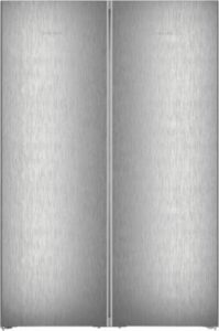 Side-by-Side Set (ook los van elkaar te gebruiken), 399 l Inhoud koelgedeelte, Automatisch ontdooisysteem koelgedeelte, Koeling door luchtcirculatie, Flessenplateau/rek (liggend), 1, 7 Glasplateaus, 1 Groentelade(n), VarioSafe (de ideale bewaarplaats voor kleine levensmiddelen zoals tubes en potjes), LED verlichting, 278 l Inhoud vriesgedeelte, BigBox [XXL]:1, 6 Lade, VarioSpace, NoFrost, LED verlichting, Display, Touch-functie, Digitale temperatuurweergave, Koel-/vriesgedeelte apart regelbaar, Smart Device mogelijk dmv optionele SmartDeviceBox, Energieklasse D, netto breedte: 120,4 cm, netto hoogte: 185,5 cm, netto diepte: 67,5 cm