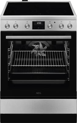 Vrijstaand fornuis, Electrische bakoven, 73 l Inhoud, AquaClean renigingssysteem, 2 Telescopisch uittreksysteem, Opbergvak/la, oven functies AirFry functie, Grill, Hetelucht (vochtig), Pizzastand, Timer, Elektrische kookplaat, Glaskeramische kookplaat, 4 Kookzones, Seperate bediening, Voorzijde, Energieklasse A, netto breedte: 59,6 cm, netto hoogte: 85 cm, netto diepte: 60 cm