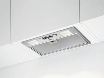 Inbouw afzuigunit, Afvoer, Om te bouwen naar / geschikt voor recirculatie, 3 Standen, maximale luchtafvoer: 330 m³/h, maximale luchtrecirculatie: 220 m³/h, LED verlichting, aantal lampen: 2, Energieklasse C, netto breedte: 52 cm, hoogte: 13,8-14,5 cm, netto diepte: 28,4 cm