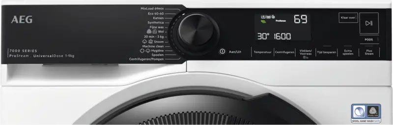 Wasautomaat, 9 kg Vulgewicht, max. 1.600 Toerental/min, Display, UniversalDose, PreciseWash, AEG ProSense-technologie, AEG ProSteam-technologie, Programma’s en opties Stoomprogramma, Eco, Vlekken, Steam Refresh, Wol, Tijdsbesparing, Beladingsherkenning, Inverter motor, Aquacontrol, Energieklasse A, netto breedte: 59,7 cm, netto hoogte: 84,7 cm, netto diepte: 66 cm