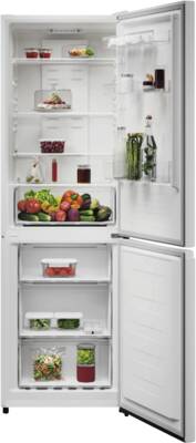 Koel-/vriescombinatie, 207 l Inhoud koelgedeelte, Automatisch ontdooisysteem koelgedeelte, Koeling door luchtcirculatie, 3 Glasplateaus, 1 Groentelade(n), LED verlichting, 97 l Inhoud vriesgedeelte, 3 Lade, NoFrost, Energieklasse D, netto breedte: 59,5 cm, netto hoogte: 186 cm, netto diepte: 59 cm