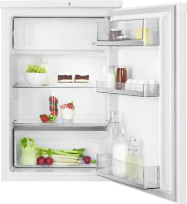 Koelkast tafelmodel, 107 l Inhoud koelgedeelte, 13 l Inhoud vriesgedeelte, Automatisch ontdooisysteem koelgedeelte, 2 Glasplateaus, 1 Groentelade(n), LED verlichting, LED temperatuurweergave, Buitenzijde, Energieklasse D, netto breedte: 56 cm, netto hoogte: 84,5 cm, netto diepte: 57,5 cm