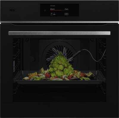 Electrische bakoven, 71 l Inhoud, temperatuurregeling: 30-300 Graden, Automatische programma’s, Kookassistent 2.0, Snel verwarmen, Zelfreinigingssysteem, Pyrolytische zelfreiniging, 2 Telescopisch uittreksysteem, Soft Closing ovendeur, Koele deur, oven functies Afbakken, Ontdooien, Opwarmen, Drogen, Inkoken, Lage temeratuur garen, Garen, SteamCrisp, Grill, Hetelucht grillen, Hetelucht, Onder- en bovenwarmte, Bovenwarmte apart regelbaar, Onderwarmte apart regelbaar, Pizzastand, Smoren, Borden verwarmen, Circulatie (vochtig), Warmhouden, Touch Control bediening, Display, Automatische uitschakeling, Halogeen verlichting, Via MyAEG-App mogelijk, Via app te bedienen, Voedselthermometer, Energieklasse A++, Go Green criteria, Made in Germany, netto breedte: 59,5 cm, netto hoogte: 59,4 cm, netto diepte: 56,7 cm