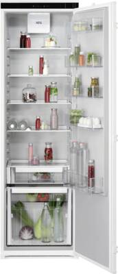 Inbouw-koelkast, Zonder vriesvak, Sleepdeur montage, 310 l Inhoud koelgedeelte, Automatisch ontdooisysteem koelgedeelte, Superkoelen, 4 Glasplateaus, 1 Groentelade(n), Display, Touch-functie, Digitale temperatuurweergave, Energieklasse E, Product bevat gerecycled materiaal, netto breedte: 54,6 cm, netto hoogte: 177,2 cm, netto diepte: 54,9 cm