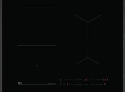 Inductie kookplaat, Bediening voorzijde, Direct Control bediening, 4 Kookzones, Brugfunctie, Panherkenning, Digitale weergave ingestelde kookstanden, Aankookautomaat, OptiHeat Control, Power Managment, PowerBoost, Pauze functie, Count Up-timer, Timer, ÖKO Timer, Facet geslepen, Zijkant, Hob2Hood functie, netto breedte: 71 cm, netto hoogte: 4,4 cm, netto diepte: 52 cm