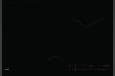 Inductie kookplaat, Bediening voorzijde, Direct Control bediening, 4 Kookzones, Brugfunctie, Panherkenning, Digitale weergave ingestelde kookstanden, Aankookautomaat, OptiHeat Control, OptiFix, Power Managment, PowerBoost, Pauze functie, Count Up-timer, Timer, ÖKO Timer, Facet geslepen, Zijkant, Hob2Hood functie, netto breedte: 78 cm, netto hoogte: 4,4 cm, netto diepte: 52 cm