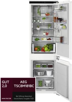 Inbouw-koel-/vrieskombinatie, Vaste deur montage, 182 l Inhoud koelgedeelte, Automatisch ontdooisysteem koelgedeelte, Superkoelen, 1 Groentelade(n), 4 Glasplateaus, 62 l Inhoud vriesgedeelte, 3 Lade, Flexi-Space (verwijderbare glazen leggers in het vriesvak), NoFrost, Display, Touch-functie, Ecometer, LED temperatuurweergave, Koel-/vriesgedeelte apart regelbaar, Energieklasse B, Go Green criteria, Product bevat gerecycled materiaal, Europa, netto breedte: 55,7 cm, netto hoogte: 176,9 cm, netto diepte: 54,9 cm