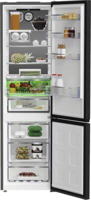 Koel-/vriescombinatie, 249 l Inhoud koelgedeelte, waarvan koel-/vrieszone individueel regelbaar: 106 l, Automatisch ontdooisysteem koelgedeelte, Flessenplateau/rek (liggend), 1, 3 Glasplateaus, 1 Groentelade(n), LED zuilverlichting, 106 l Inhoud vriesgedeelte, 3 Lade, NoFrost, Display, Touch-functie, Buitenzijde, HarvestFresh, HomeWhiz, Via app te bedienen, Energieklasse C, netto breedte: 59,5 cm, netto hoogte: 203,5 cm, netto diepte: 66,3 cm