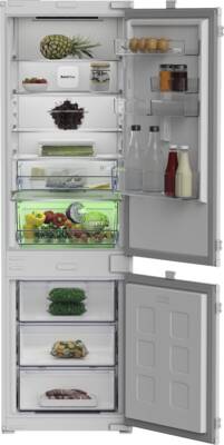 Inbouw-koel-/vrieskombinatie, Sleepdeur montage, 194 l Inhoud koelgedeelte, Automatisch ontdooisysteem koelgedeelte, 1, 1 Groentelade(n), 3 Glasplateaus, 76 l Inhoud vriesgedeelte, 3 Lade, NoFrost, Display, Koel-/vriesgedeelte apart regelbaar, Energieklasse C, netto breedte: 54 cm, netto hoogte: 177,5 cm, netto diepte: 55 cm