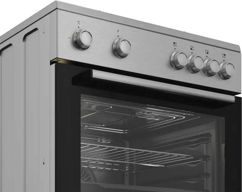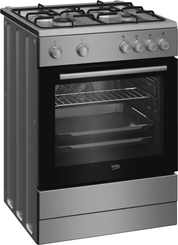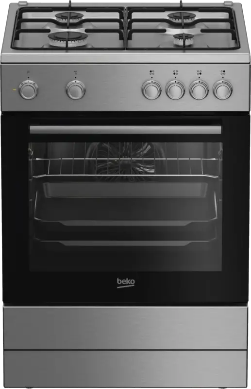 Vrijstaand fornuis, Electrische bakoven, 66 l Inhoud, 5 Bakniveaus, Stoomreinigingsprogramma, Volledig glazen binnendeur, oven functies Ontdooien, Grill, Hetelucht, 3D koken, Draaiknopbediening, Halogeen verlichting, Gaskookplaat, 4 Kookzones, 1 Gas-sudderbrander, 2 Gas normaalbrander, 1 Gas sterkbrander, Seperate bediening, Voorzijde, Energieklasse A, netto breedte: 60 cm, netto hoogte: 85 cm, netto diepte: 60 cm
