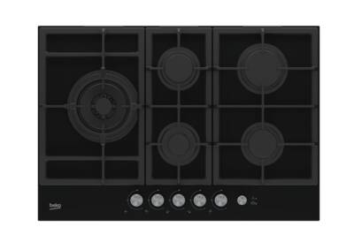 Gaskookplaat, Geintegreerde vonkontsteking, 5 Kookzones, 1 Gas-sudderbrander, 2 Gas normaalbrander, 1 Gas snelbrander, 1 Gas wokbrander, netto breedte: 75 cm, netto hoogte: 4,6 cm, netto diepte: 52,4 cm