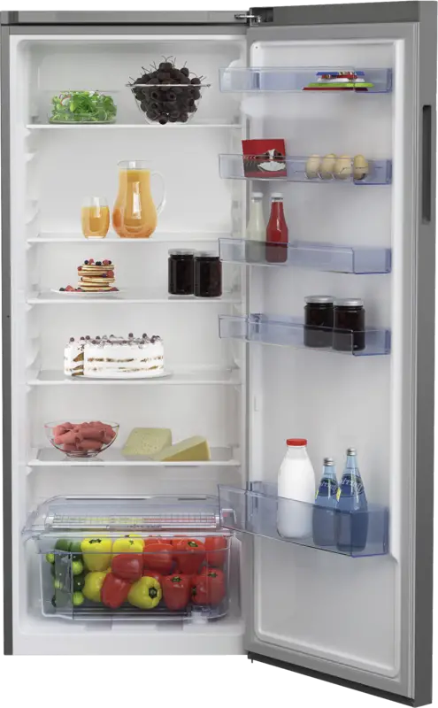 Koelkast vrijstaand, Zonder vriesvak, 286 l Inhoud koelgedeelte, 5 Glasplateaus, 1 Groentelade(n), LED verlichting, Energieklasse E, netto breedte: 59,5 cm, netto hoogte: 150,8 cm, netto diepte: 59,2 cm