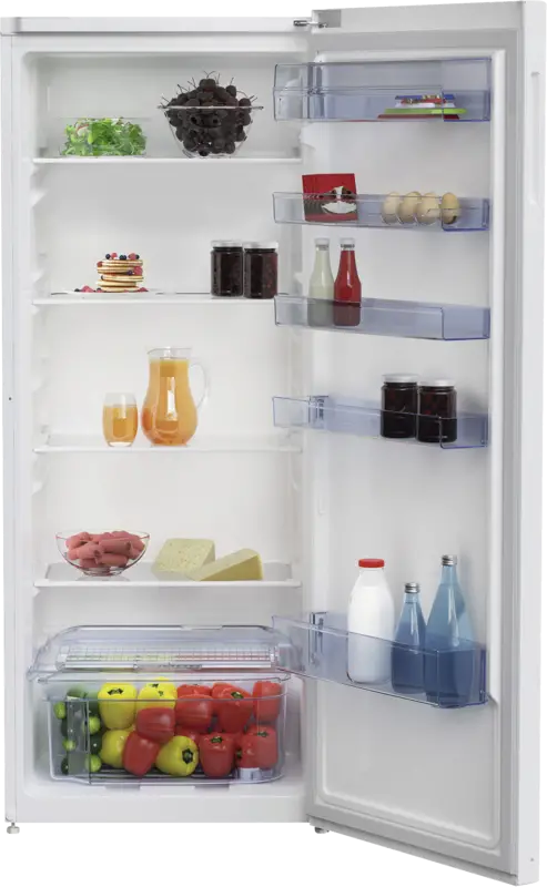 Koelkast vrijstaand, Zonder vriesvak, 286 l Inhoud koelgedeelte, 5 Glasplateaus, 1 Groentelade(n), LED verlichting, Energieklasse E, netto breedte: 59,5 cm, netto hoogte: 150,8 cm, netto diepte: 59,2 cm