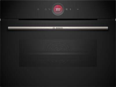 Electrische bakoven, 47 l Inhoud, 3 Bakniveaus, temperatuurregeling: 30-300 Graden, Kookassistent, Snel verwarmen, Pyrolytische zelfreiniging, Hydrolyse reiniging, Soft Closing ovendeur, SoftOpen deur, Volledig glazen binnendeur, oven functies AirFry functie, Ontdooien, Grootvlakgrill, Kleinvlakgrill, Hetelucht mild, Hetelucht Eco, Onder- en bovenwarmte Eco, Onderwarmte apart regelbaar, Borden verwarmen, Circulatie, Warmhouden, Bedieningsring, Verlicht, Display, Kleur, Temperatuurvoorstel, Elektronische klok, Start en stopfunctie, Automatische uitschakeling, Home Connect (bediiening via Smartphone of Tablet mogelijk), Via app ondersteunde gegevensoverdracht, Via app te bedienen, Voice control, compatible met Amazon Alexa, Google Assistant, Energieklasse A+, netto breedte: 59,4 cm, netto hoogte: 45,5 cm, netto diepte: 54,8 cm