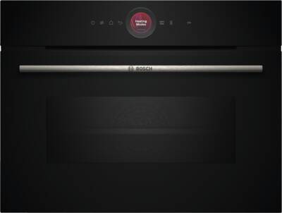 Electrische bakoven, 45 l Inhoud, 3 Bakniveaus, temperatuurregeling: 30-230 Graden, Kookassistent, Snel verwarmen, Hydrolyse reiniging, Soft Closing ovendeur, SoftOpen deur, Koele deur, oven functies AirFry functie, Grootvlakgrill, Kleinvlakgrill, Hetelucht, Hetelucht mild, Hetelucht Eco, Onder- en bovenwarmte Eco, Onderwarmte apart regelbaar, Magnetron, 900 Watt, 5 Standen, Borden verwarmen, Touch Control bediening, Bedieningsring, Verlicht, Display, Temperatuurvoorstel, Elektronische klok, Start en stopfunctie, Automatische uitschakeling, LED verlichting, Ovenverlichting afzonderlijk te gebruiken, Home Connect (bediiening via Smartphone of Tablet mogelijk), Via app ondersteunde gegevensoverdracht, Via app te bedienen, Voice control, compatible met Amazon Alexa, Google Assistant, netto breedte: 59,4 cm, netto hoogte: 45,5 cm, netto diepte: 54,8 cm
