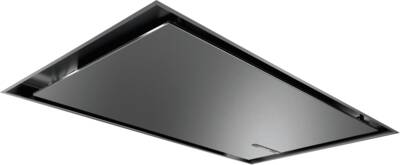Plafond afzuigkap, Afvoer, Om te bouwen naar / geschikt voor recirculatie, 3 Standen, Intensief stand, met automatische terugschakeling, Nallooptijd, 10 Minuten, maximale luchtafvoer: 734 m³/h, maximale luchtrecirculatie: 574 m³/h, Afstandsbediening, LED verlichting, aantal lampen: 4, Metaal vetfilter, Cassettefilter, Reinigingsindicatie koolstoffilter, Reinigingsindicatie vetfilter, Voice control, Energieklasse B, netto breedte: 90 cm, netto hoogte: 18,9 cm, netto diepte: 50 cm