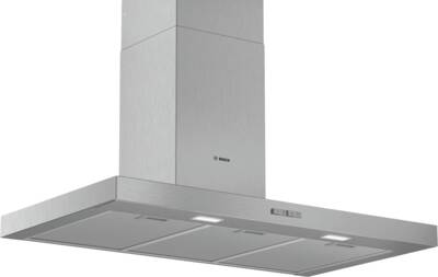 Schouwkap, Afvoer, Om te bouwen naar / geschikt voor recirculatie, 3 Standen, maximale luchtafvoer: 330 m³/h, maximale luchtrecirculatie: 180 m³/h, Druktoetsbediening, LED verlichting, aantal lampen: 2, Metaal vetfilter, Geschikt voor vaatwasser, Energieklasse D, netto breedte: 90 cm, hoogte: 63,5-107,5 cm, netto diepte: 50 cm
