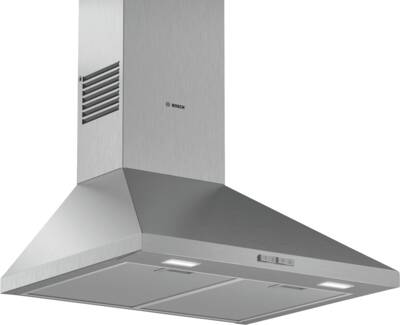 Schouwkap, Afvoer, Om te bouwen naar / geschikt voor recirculatie, 3 Standen, maximale luchtafvoer: 570 m³/h, maximale luchtrecirculatie: 400 m³/h, Druktoetsbediening, LED verlichting, aantal lampen: 2, Metaal vetfilter, Geschikt voor vaatwasser, Energieklasse A, netto breedte: 60 cm, hoogte: 79,9-97,5 cm, netto diepte: 50 cm