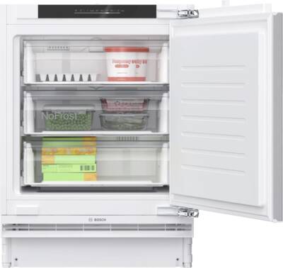 Onderbouw-vrieskast, Vaste deur montage, 85 l Inhoud, 3 Lade, Supervriezen, NoFrost, LED temperatuurweergave, FreshSensor, Home Connect (bediiening via Smartphone of Tablet mogelijk), Via app te bedienen, Energieklasse E, netto breedte: 59,8 cm, netto hoogte: 82 cm, netto diepte: 54,8 cm