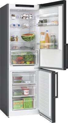 Koel-/vriescombinatie, 218 l Inhoud koelgedeelte, Automatisch ontdooisysteem koelgedeelte, Superkoelen, Flessenplateau/rek (liggend), 1, 4 Glasplateaus, 1 Groentelade(n), LED verlichting, 103 l Inhoud vriesgedeelte, NoFrost, LED temperatuurweergave, Koel-/vriesgedeelte apart regelbaar, Energieklasse C, netto breedte: 60 cm, netto hoogte: 186 cm, netto diepte: 66,5 cm