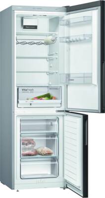 Koel-/vriescombinatie, 214 l Inhoud koelgedeelte, waarvan VitaFresh, Automatisch ontdooisysteem koelgedeelte, Flessenplateau/rek (liggend), 4 Glasplateaus, LED verlichting, 94 l Inhoud vriesgedeelte, BigBox [XXL]:1, 2 Lade, Digitale temperatuurweergave, Energieklasse E, netto breedte: 60 cm, netto hoogte: 186 cm, netto diepte: 65 cm