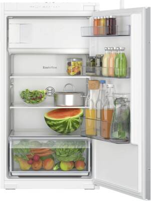 Inbouw-koelkast, Sleepdeur montage, 132 l Inhoud koelgedeelte, 15 l Inhoud vriesgedeelte, Superkoelen, Supervriezen, 3 Glasplateaus, 1 Groentelade(n), LED verlichting, Energieklasse E, netto breedte: 54,1 cm, netto hoogte: 102,1 cm, netto diepte: 54,8 cm
