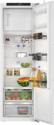 Inbouw-koelkast, Vaste deur montage, 246 l Inhoud koelgedeelte, 34 l Inhoud vriesgedeelte, Superkoelen, Supervriezen, Flessenplateau/rek (liggend), 5 Glasplateaus, 2 Groentelade(n), LED verlichting, Energieklasse E, netto breedte: 54,1 cm, netto hoogte: 177,2 cm, netto diepte: 54,8 cm