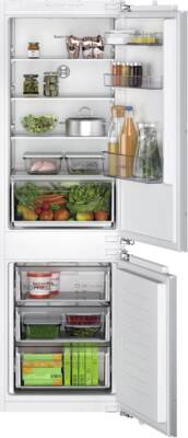 Inbouw-koel-/vrieskombinatie, Vaste deur montage, 184 l Inhoud koelgedeelte, Automatisch ontdooisysteem koelgedeelte, 1 Groentelade(n), 4 Glasplateaus, 76 l Inhoud vriesgedeelte, 3 Lade, NoFrost, LED temperatuurweergave, Energieklasse E, netto breedte: 54,1 cm, netto hoogte: 177,2 cm, netto diepte: 54,8 cm