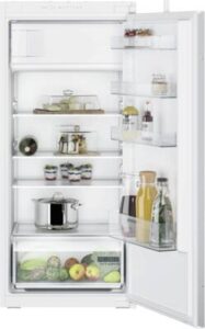 Inbouw-koelkast, Zonder vriesvak, Integreerbaar, Vaste deur montage, 204 l Inhoud koelgedeelte, Automatisch ontdooisysteem koelgedeelte, Superkoelen, Flessenplateau/rek (liggend), 5 Glasplateaus, 1 Groentelade(n), LED verlichting, Energieklasse D, netto breedte: 55,8 cm, netto hoogte: 122,1 cm, netto diepte: 54,8 cm