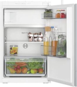 Inbouw-koelkast, Zonder vriesvak, Integreerbaar, Sleepdeur montage, 204 l Inhoud koelgedeelte, Automatisch ontdooisysteem koelgedeelte, Superkoelen, 5 Glasplateaus, 1 Groentelade(n), LED verlichting, Energieklasse E, netto breedte: 54,1 cm, netto hoogte: 122,1 cm, netto diepte: 54,8 cm