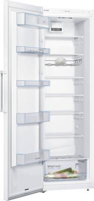 Koelkast vrijstaand, Zonder vriesvak, 346 l Inhoud koelgedeelte, Automatisch ontdooisysteem koelgedeelte, Superkoelen, Flessenplateau/rek (liggend), 1, 7 Glasplateaus, LED verlichting, Energieklasse E, netto breedte: 60 cm, netto hoogte: 186 cm, netto diepte: 65 cm