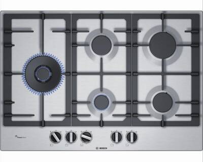 Gaskookplaat, Bediening voorzijde, Draaiknopbediening, Geintegreerde vonkontsteking, 5 Kookzones, 1 Gas-sudderbrander, 2 Gas normaalbrander, 1 Gas sterkbrander, 1 Gas wokbrander, netto breedte: 75 cm, netto hoogte: 4,5 cm, netto diepte: 52 cm