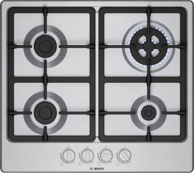 Gaskookplaat, Bediening voorzijde, Draaiknopbediening, Geintegreerde vonkontsteking, 4 Kookzones, 1 Gas-sudderbrander, 2 Gas normaalbrander, 1 Gas wokbrander, Om te bouwen naar butagas, netto breedte: 58,2 cm, netto hoogte: 5,1 cm, netto diepte: 52 cm