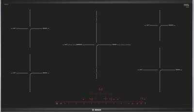 Inductie kookplaat, Bediening voorzijde, DirectSelect Premium, 5 Inductie kookzone(s), 17 Standen, Braadsensor Plus, PerfectFry, QuickStart, ReStart, Count Up-timer, Kookwekker, Timer, Facet geslepen, netto breedte: 91,6 cm, netto hoogte: 5,1 cm, netto diepte: 52,7 cm
