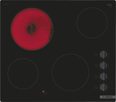 Glaskeramische kookplaat, Bediening zijkant, Draaiknopbediening, 4 Kookzones, 9 Standen, netto breedte: 59,2 cm, netto hoogte: 4,6 cm, netto diepte: 52,2 cm