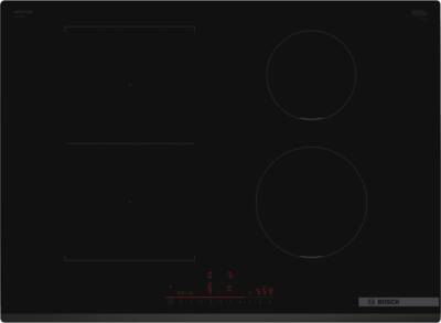 Inductie kookplaat, Bediening voorzijde, DirectSelect, 4 Kookzones, Combinatiezones: 1, bruikbaar als twee aparte of één grote kookzone, Panherkenning, 17 Standen, Power Managment, QuickStart, PowerBoost, Favorieten knop, Pauze functie, ReStart, Timer, Facet geslepen, Home Connect (bediiening via Smartphone of Tablet mogelijk), Via app te bedienen, netto breedte: 71 cm, netto hoogte: 5,1 cm, netto diepte: 52,2 cm