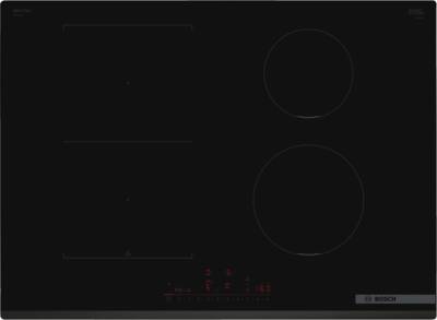 Inductie kookplaat, Bediening voorzijde, DirectSelect, 4 Kookzones, Combinatiezones: 1, bruikbaar als twee aparte of één grote kookzone, 17 Standen, PerfectFry Plus, Power Managment, QuickStart, PowerBoost, Warmhoudfunctie, Favorieten knop, Pauze functie, Restart functie, Timer, Facet geslepen, Home Connect (bediiening via Smartphone of Tablet mogelijk), Via app te bedienen, netto breedte: 71 cm, netto hoogte: 5,1 cm, netto diepte: 52,2 cm