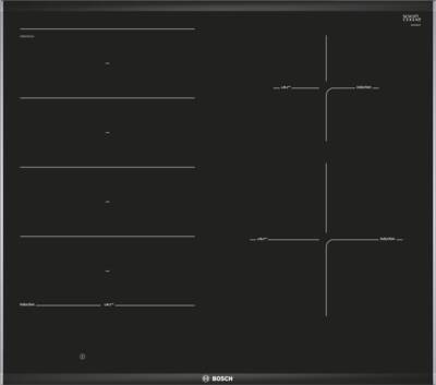 Glaskeramische kookplaat, Inductie kookplaat, Bediening voorzijde, DirectSelect Premium, 4 Inductie kookzone(s), 1, MoveMode, 17 Standen, PerfectFry, Snel verwarmen, PanBoost, Veeg beveiliging, ReStart, Count Up-timer, Kookwekker, Timer, netto breedte: 60,6 cm, netto hoogte: 5,1 cm, netto diepte: 52,7 cm