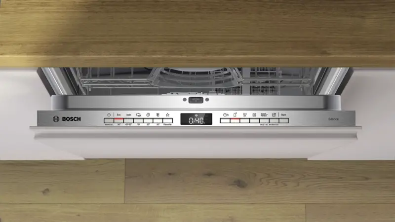 Inbouw-vaatwasser, Volledig integreerbaar, 6 Spoelprogramma’s, Startuitstel, Doseerassistent/-pomp, Afwasmiddelherkenning, Display, Resttijdaanduiding, Infolight (programaverloop dmv lichtpunt op de vloer), Bovenkorf in hoogte verstelbaar, ActiveWaterTechnologie, AquaSensor (bespaart water en energie), Zelfreinigend filtersysteem, EcoSilence Drive motor, Aquastop, Home Connect (bediiening via Smartphone of Tablet mogelijk), Via app ondersteunde gegevensoverdracht, Via app te bedienen, Voice control, Energieklasse C, netto breedte: 59,8 cm, netto hoogte: 81,5 cm, netto diepte: 55 cm