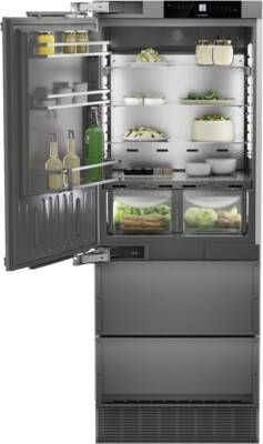 Inbouw-koel-/vrieskombinatie, Vaste deur montage, 277 l Inhoud koelgedeelte, waarvan 62,1 l Versheidzone, BioFresh, Superkoelen, 2, 3 Glasplateaus, 125 l Inhoud vriesgedeelte, 2 Lade, NoFrost, LED verlichting, IJsblokjesdispenser voor IJsblokjes, Display, Touch-functie, Digitale temperatuurweergave, Koel-/vriesgedeelte apart regelbaar, Energieklasse E, netto breedte: 75,7 cm, netto hoogte: 202,7 cm, netto diepte: 61 cm