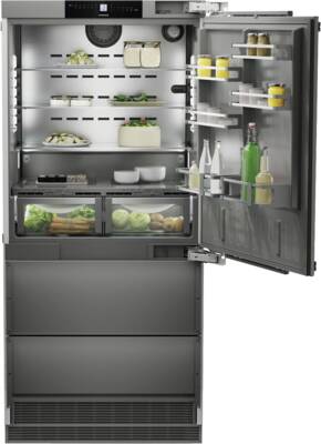 Inbouw-koel-/vrieskombinatie, Vaste deur montage, 363 l Inhoud koelgedeelte, waarvan 70,6 l Versheidzone, BioFresh, Superkoelen, 2, 3 Glasplateaus, 160 l Inhoud vriesgedeelte, 2 Lade, NoFrost, LED verlichting, IJsblokjesdispenser voor IJsblokjes, Display, Touch-functie, Digitale temperatuurweergave, Koel-/vriesgedeelte apart regelbaar, Energieklasse E, netto breedte: 91 cm, netto hoogte: 202,7 cm, netto diepte: 61 cm