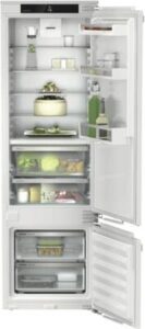 Inbouw-koel-/vrieskombinatie, Vaste deur montage, 363 l Inhoud koelgedeelte, waarvan 70,6 l Versheidzone, BioFresh, Superkoelen, 2, 3 Glasplateaus, 160 l Inhoud vriesgedeelte, 2 Lade, NoFrost, LED verlichting, IJsblokjesdispenser voor IJsblokjes, Display, Touch-functie, Digitale temperatuurweergave, Koel-/vriesgedeelte apart regelbaar, Energieklasse E, netto breedte: 91 cm, netto hoogte: 202,7 cm, netto diepte: 61 cm