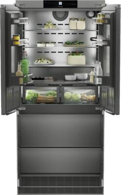Inbouw-koel-/vrieskombinatie, Koelzone 2 deurs, Vaste deur montage, 363 l Inhoud koelgedeelte, waarvan 70,6 l Versheidzone, BioFresh, Superkoelen, 2, 3 Glasplateaus, 160 l Inhoud vriesgedeelte, 2 Lade, NoFrost, LED verlichting, IJsblokjesdispenser voor IJsblokjes, Display, Touch-functie, Digitale temperatuurweergave, Koel-/vriesgedeelte apart regelbaar, Energieklasse E, netto breedte: 91 cm, netto hoogte: 202,7 cm, netto diepte: 61 cm