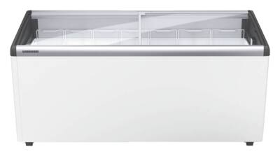 Vrieskist, Industrieel gebruik, 355 l Inhoud, 7 vriesmanden, Op wielen verrijdbaar, Glasschuifdeksel, Energieklasse D, netto breedte: 168,1 cm, netto hoogte: 82,5 cm, netto diepte: 69,1 cm