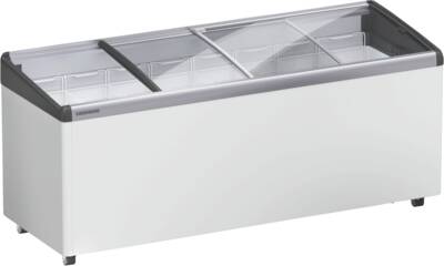 Vrieskist, Industrieel gebruik, 408 l Inhoud, 8 vriesmanden, Op wielen verrijdbaar, Glasschuifdeksel, Energieklasse E, netto breedte: 188,5 cm, netto hoogte: 82,5 cm, netto diepte: 68 cm