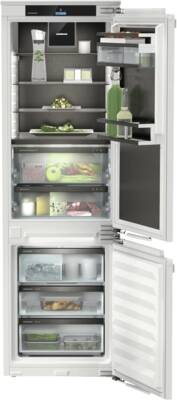 Inbouw-koel-/vrieskombinatie, Vaste deur montage, 175 l Inhoud koelgedeelte, waarvan 70,7 l Versheidzone, BioFresh, HydroBreeze: de koude nevel van rond 0 °C in de safe geeft levensmiddelen de extra kick voor een langere houdbaarheid., Superkoelen, 2, 4 Glasplateaus, 71 l Inhoud vriesgedeelte, 3 Lade, VarioSpace, NoFrost, LED verlichting, IJsblokjesdispenser voor IJsblokjes, Display, Kleur, 2,4 inch, 6,1cm, Touch-functie, Digitale temperatuurweergave, Koel-/vriesgedeelte apart regelbaar, Smart Device geintegreerd, Via app ondersteunde gegevensoverdracht, Via app te bedienen, Energieklasse C, Made in Germany, netto breedte: 55,9 cm, netto hoogte: 177 cm, netto diepte: 54,6 cm