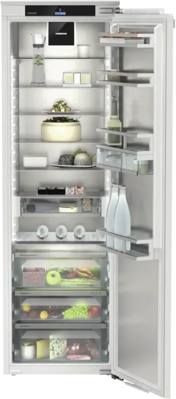 Inbouw-koelkast, Zonder vriesvak, Integreerbaar, Vaste deur montage, 296 l Inhoud koelgedeelte, waarvan 97,9 l Versheidzone, BioFresh, HydroBreeze: de koude nevel van rond 0 °C in de safe geeft levensmiddelen de extra kick voor een langere houdbaarheid., Superkoelen, Flessenplateau/rek (liggend), 3, 6 Glasplateaus, VarioSafe (de ideale bewaarplaats voor kleine levensmiddelen zoals tubes en potjes), LED verlichting, Display, Kleur, 2,4 inch, 6,1cm, Touch-functie, Digitale temperatuurweergave, Waterdispenser, Smart Device geintegreerd, Via app ondersteunde gegevensoverdracht, Via app te bedienen, Energieklasse C, Made in Germany, netto breedte: 55,9 cm, netto hoogte: 177 cm, netto diepte: 54,6 cm