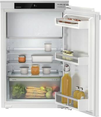 Inbouw-koelkast, Integreerbaar, Vaste deur montage, 102 l Inhoud koelgedeelte, 16 l Inhoud vriesgedeelte, Superkoelen, 3 Glasplateaus, 1 Groentelade(n), LED verlichting, Display, Touch-functie, Digitale temperatuurweergave, Smart Device mogelijk dmv optionele SmartDeviceBox, Via app ondersteunde gegevensoverdracht, Via app te bedienen, Energieklasse D, Made in Germany, netto breedte: 55,9 cm, netto hoogte: 87,2 cm, netto diepte: 54,6 cm