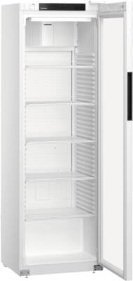Koelkast vrijstaand, Zonder vriesvak, Industrieel gebruik, 400 l Bruto inhoud, Automatisch ontdooisysteem koelgedeelte, Afsluitbare deur, Glazen deur, 5 Legroosters, LED verlichting, Energieklasse C, netto breedte: 59,7 cm, netto hoogte: 188,4 cm, netto diepte: 65,4 cm